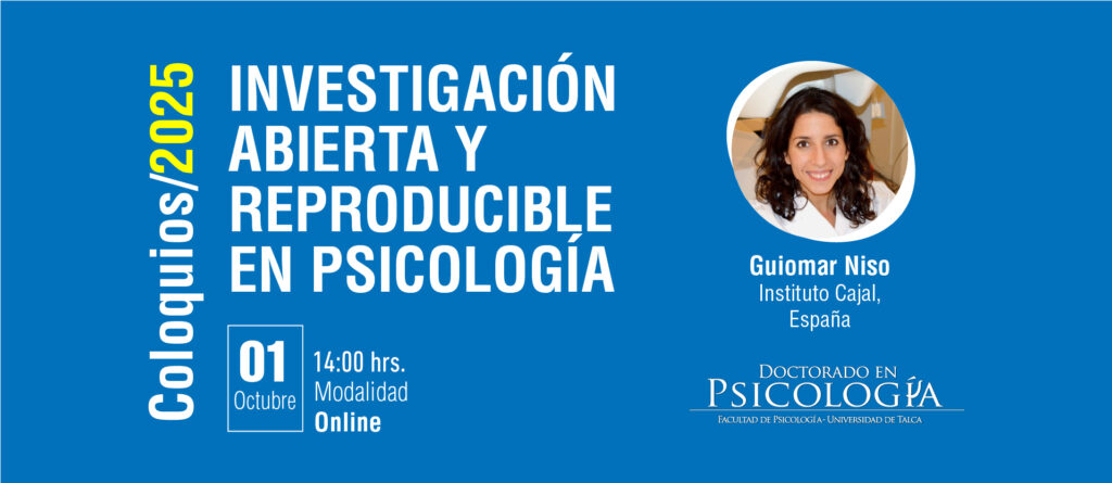 No te pierdas este coloquio exclusivo del Doctorado en Psicología de la Universidad de Talca con la Dra. Guiomar Niso, referente y experta en neurociencia y ciencia abierta. Biografía: La Dra. Niso es investigadora en el Consejo Superior de Investigaciones Científicas. Utiliza la neuroimagen para caracterizar la actividad cerebral en personas sanas y estudiar las […]