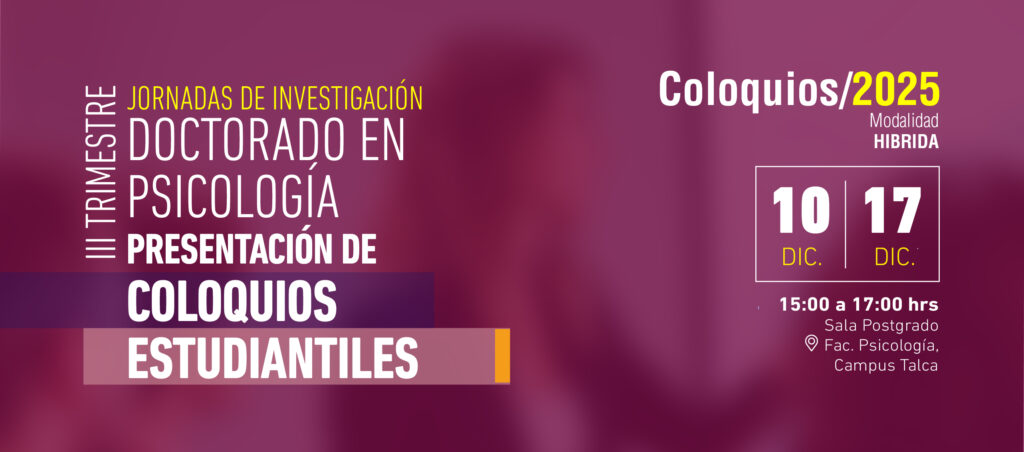 JORNADAS DE INVESTIGACIÓN: COLOQUIOS ESTUDIANTILES – TERCER TRIMESTRE El próximo miercoles 10 y miércoles 17 de Diciembre los estudiantes de nuestro programa de Doctorado en Psicología nos presentarán los avances de sus tesis doctorales, durante las jornadas de coloquios, las cuales se enmarcan en la estructura curricular y se encontrarán abiertas a la comunidad en […]