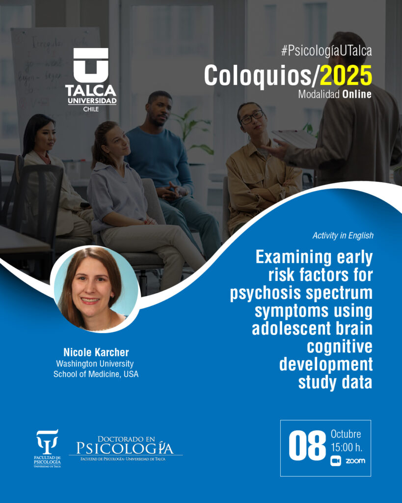 En nuestro próximo coloquio la destacada Dra. Nicole Karcher expondrá cómo a través de sus revolucionarias investigaciones ha podido estudiar los factores neuronales, genéticos, cognitivos y ambientales que influyen en el desarrollo y la persistencia de las experiencias psicóticas en niños, niñas y adolescentes. Asi mismo, nos hablará de su metodología integral, que combina el uso de técnicas de vanguardia con el análisis de enfoques epidemiológicos y genómicos.