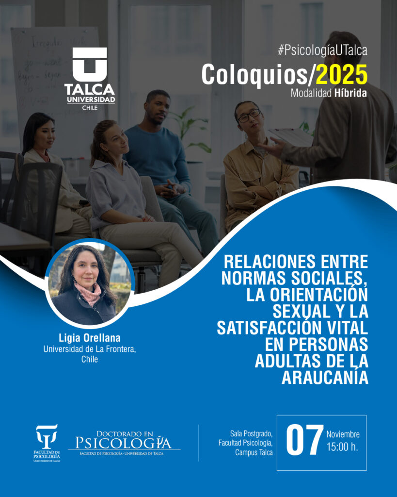 - Tema: Relaciones entre normas sociales, la orientación sexual y la satisfacción vital en personas adultas de La Araucanía: resultados del proyecto de investigación para la Instalación en la Academia ANID 85220056.